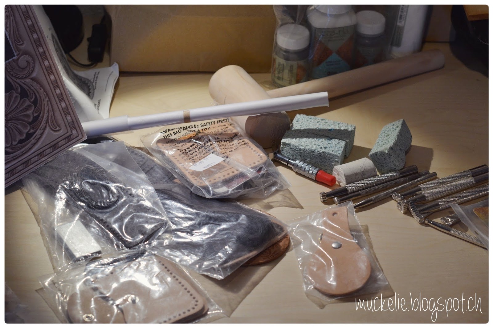 Gestern Abend brachte mich meine Mann auf eine gute Idee. Als wir unseren Road Trip durch Nordamerika gemacht haben, hatte ich mir in Montana mal das «The Leather Craft Handbook» samt Set gekauft.