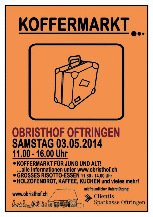 Es ist nämlich so, da gibt es diesen «Koffermarkt in Obristhof» und das hört sich sooo toll an. Da gibt diese ganz tolle Regel, man darf nur Sachen verkaufen, welche in einen Koffer mit den Massen von Länge: 85 cm, Breite: 50 cm, Höhe 35 passen. Ist das nicht voll die geniale Idee?