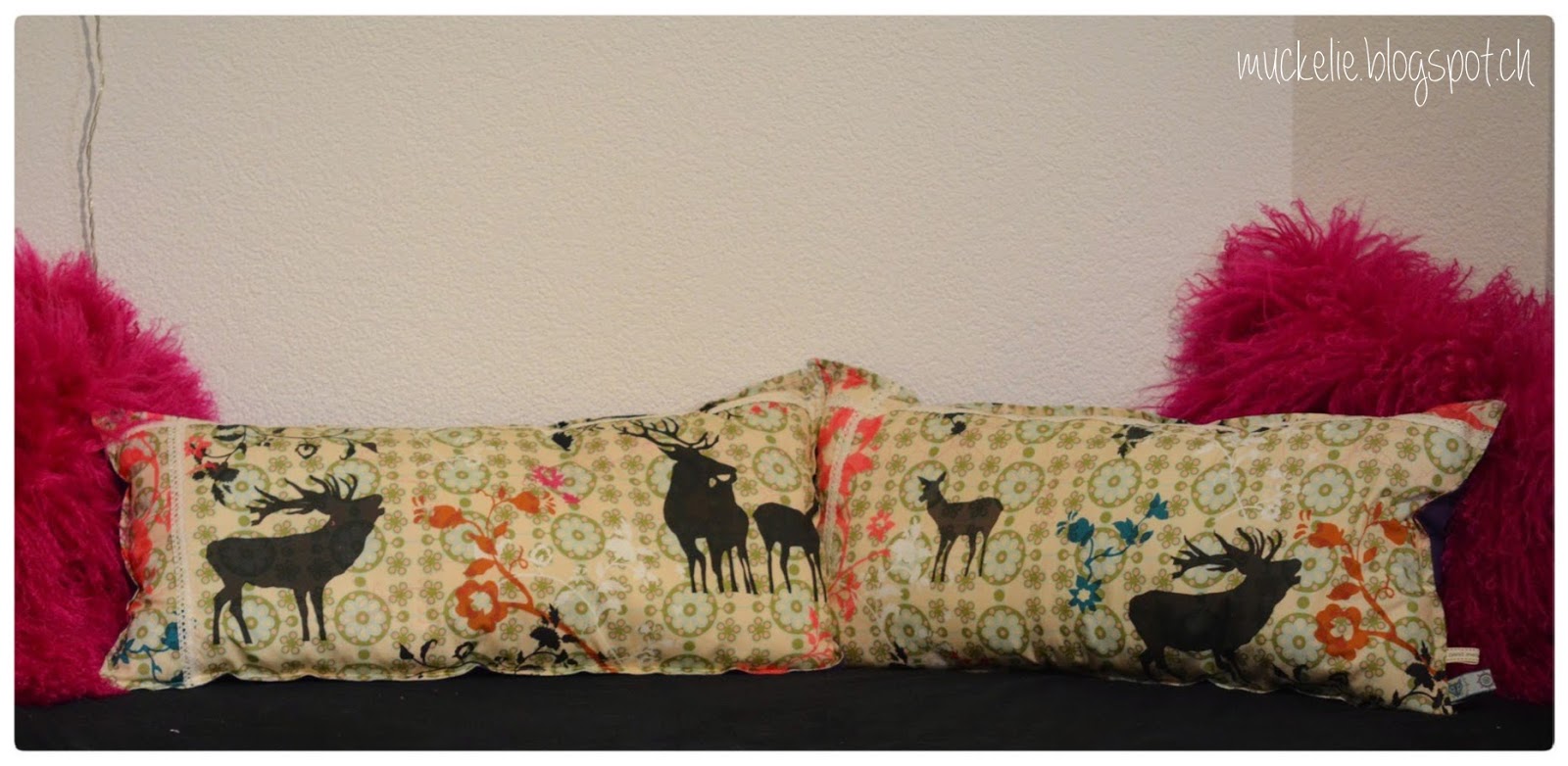 Ich weiss gar nicht genau wann es her ist, als ich bei «Mamsell» ein ganz tolles Reststück von den Stoffen von «chamue» gefunden habe. Schnell hab ich gemerkt, dass das Stück nicht wirklich für ein Kleidungsstück geeignet war (wegen der Form und den Bedruck), darum habe ich mich entschlossen Kissen daraus zu machen. Na ja jetzt war ich ja meistens beschäftig und habe für den Koffermarkt genäht, dass das Projekt erst mal warten musste, aber jetzt habe ich es geschafft!!!