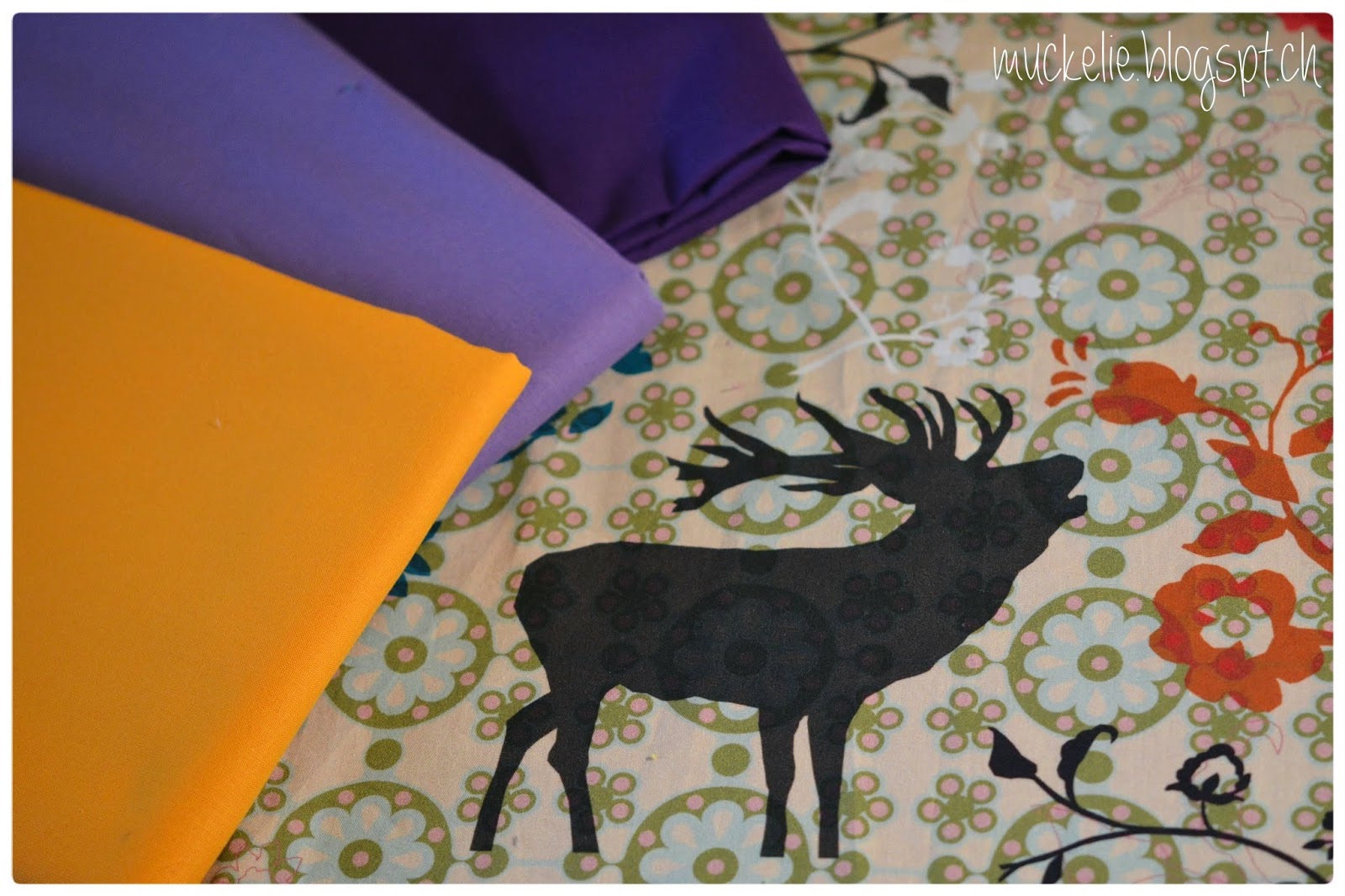 Zur Zeit habe ich auch nur 3 uni Stoffe im Haus (die bekommt man ja echt schlecht) und nach einigen hin und er sollte es dann der dunkel lillane Stoff, welchen ich schon für meinen Patchwok Kissen genommen hatte sein.