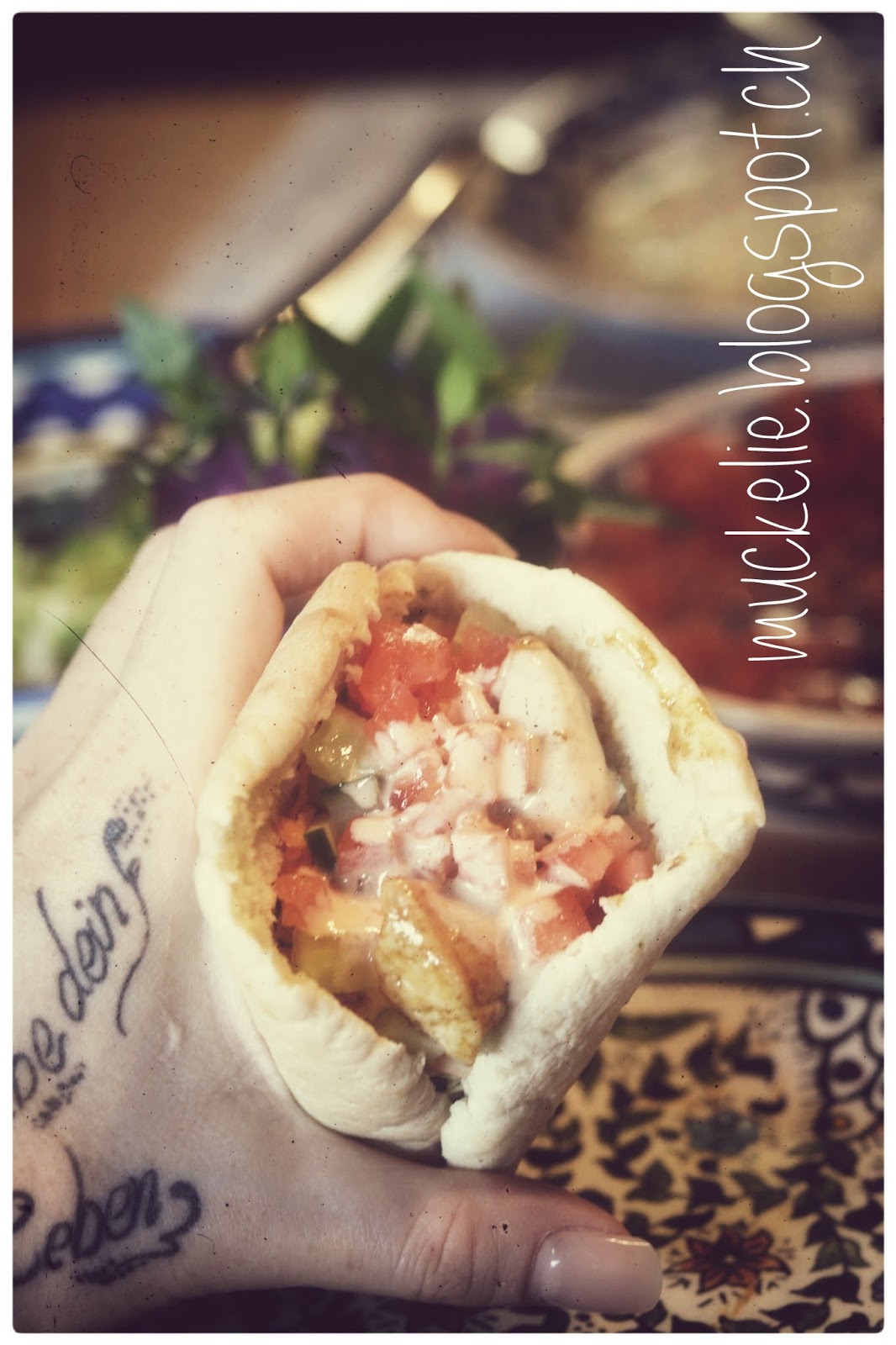 Ach ja das ganze funktioniert in vegetarisch natürlich auch ganz toll!Die Pitabrote werden ca. 200C° 5-10 min. «gebacken», aber das ist auch so eine Gefühlssache, jeder mag es ja anders.