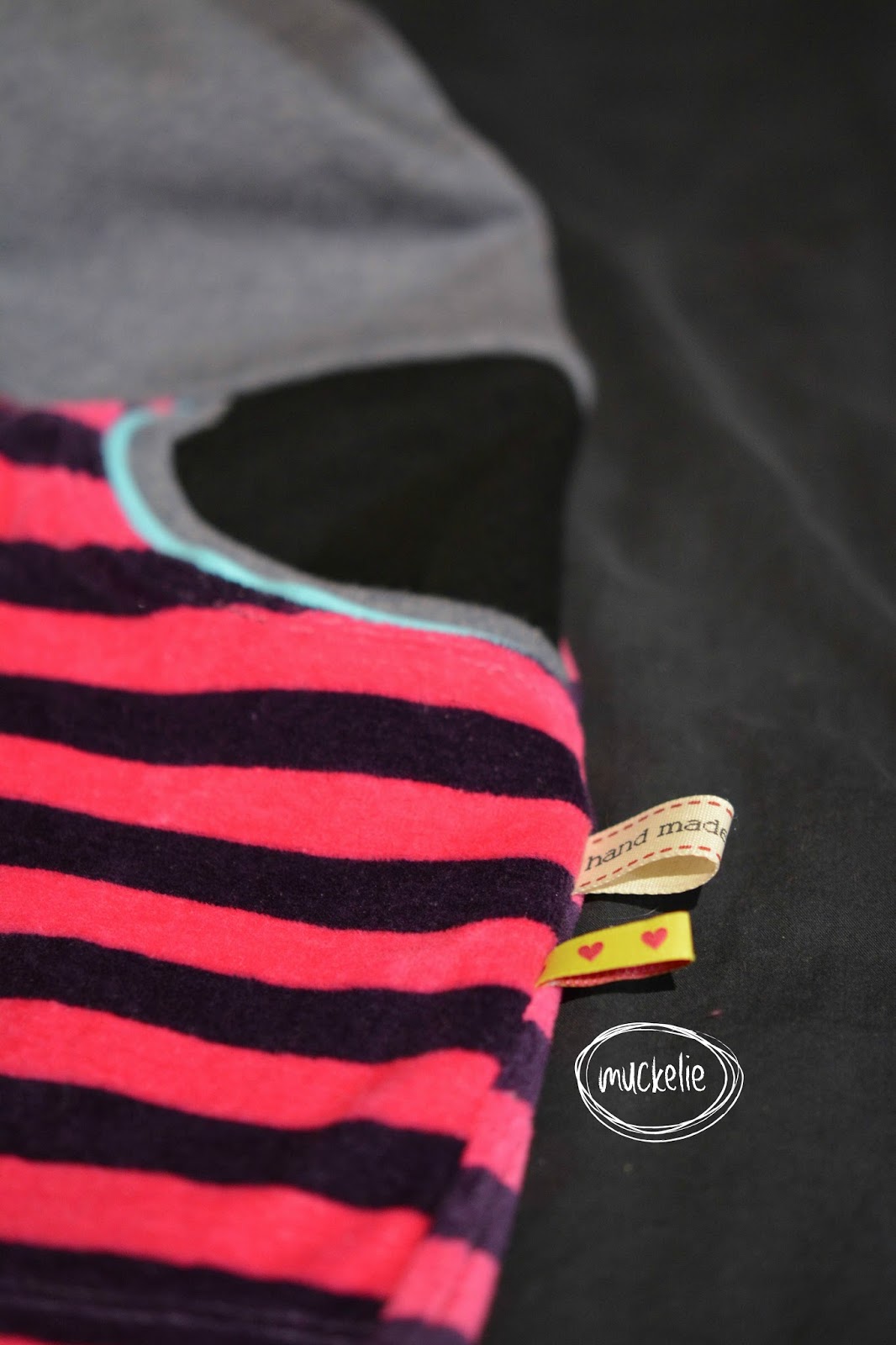 Leider reichte der Stoff nicht genau, so fällt er vorne in die eine richtige Richtung (von oben nach unten, wie er eben soll) und hinten eben in die falsche. Oh man war das dann schwierig zu nähen, so dass sich die Streife immer getroffen haben. Nici ist da ja nicht so freundlich habe ich gemerkt.