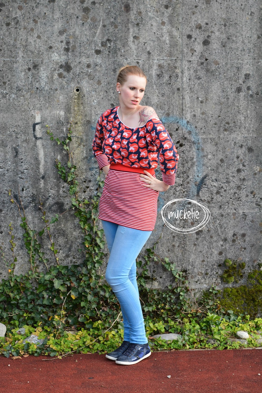 Ich selber habe eine Kombination aus Pulli und Top genäht, da ich nicht der Typ Frau bin, welchen Kurzpullis gut stehen.