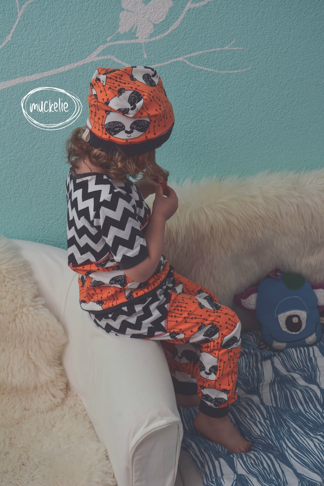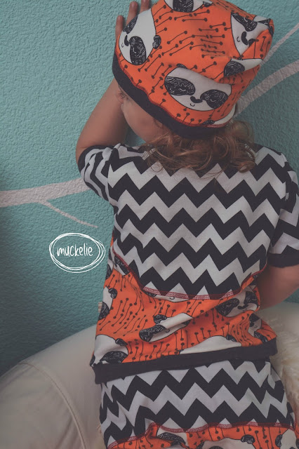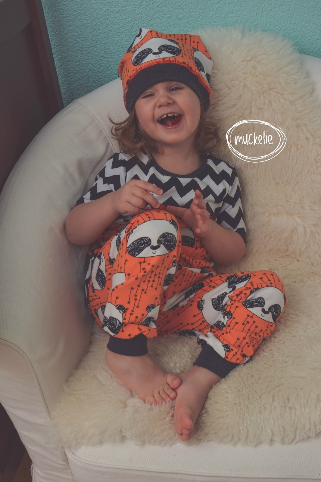 Die Schnitte sind übrigen alle aus dem Hause «Sara&Jule». Ein mal habe ich wieder den «Pull*it*over» genommen und die Ärmel abgehauen und einen einfachen Kragen gemacht, die Mütze ist nach dem Freebook «Beani» entstanden und die Hose ist auch von da.