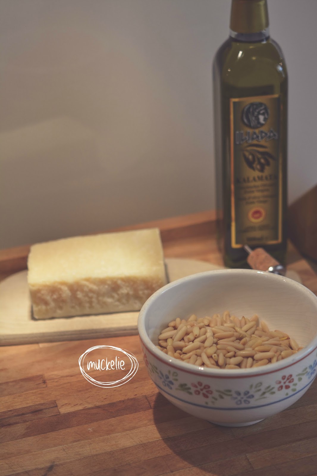 Ich hatte so viel Bärlauch, das ich noch mal Pinienkerne nachkaufen musste und einen GANZE (!!!!) Knoblauch (Knolle?) in die Masse gemacht habe 😀