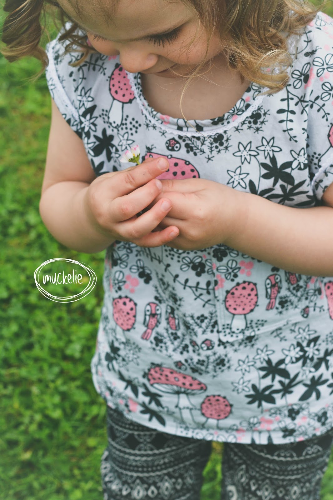 Ich bin ja so ein grosser Fliegenpilz Fan und ich finde mein «Paulchen» macht eine sehr gute Figur zu der Bluse, ausserdem freut es mich ungemein, das Muckelie endlich anfängt mit ihren Häkelpuppen zu spielen.