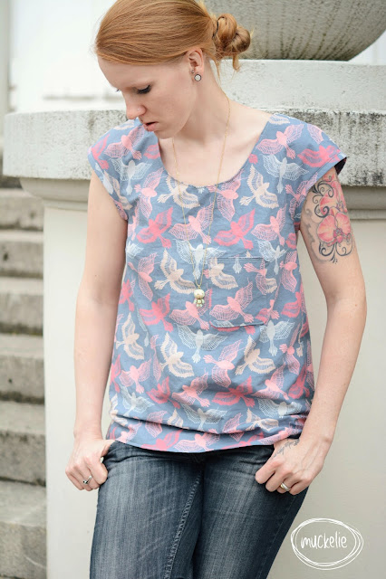 Ganz happy bin ich, dass ich endlich diesen tollen Stoff «Paradiesvögel» verarbeiten konnte, welchen ich schon vor lange Zeit ein einmal bei «Sara&Julz» gekauft hatte. Es hat wirklich ganz, ganz knapp gereicht, hatte damals nämlich nur ein Reststück gekauft.