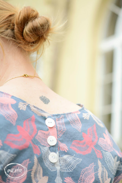 Leider sieht man das auf den Bilder nicht so gut, aber sehr stolz bin ich auch auf die beiden kleinen offenen Stellen (hab keine Ahnung wie man das richtig nennt) links und recht bei der Bluse, die sind mit samt Säumen wirklich gut uns sehr ordentlich gelungen.Den mega tollenSchnitt bekommt ihr übrigens «HIER». Ich hab gleich noch zwei Teilchen davon genäht, 1x Das Kleid und 1x eine Bluse für meine Grosse.