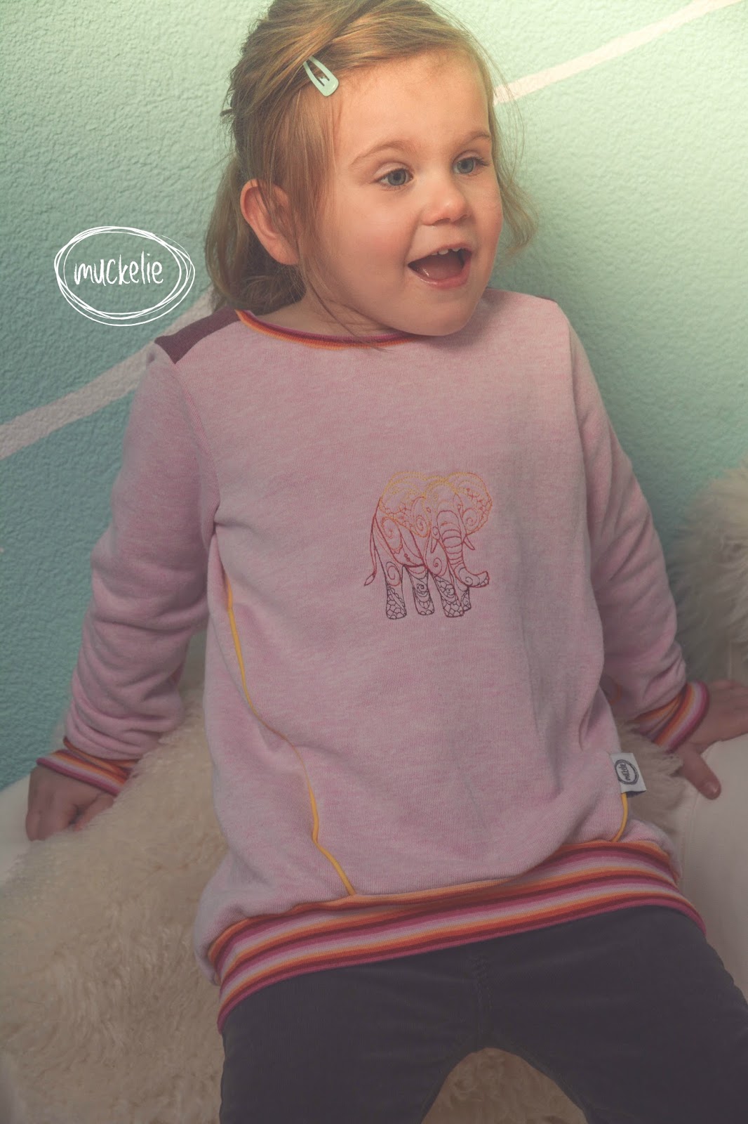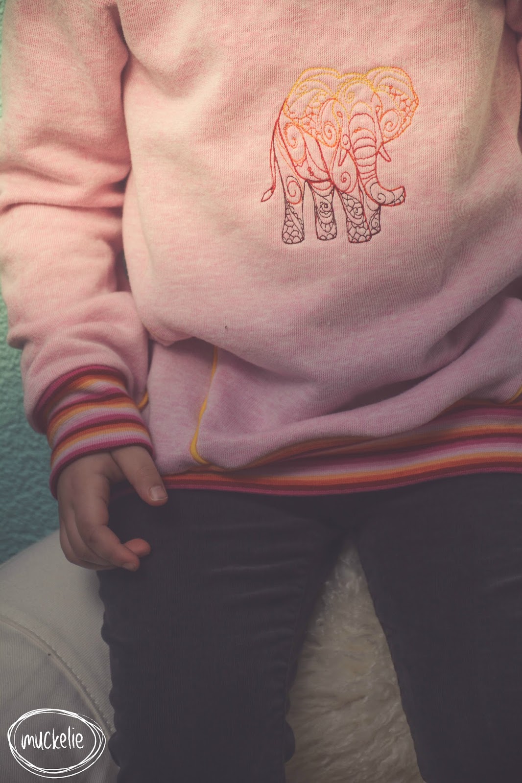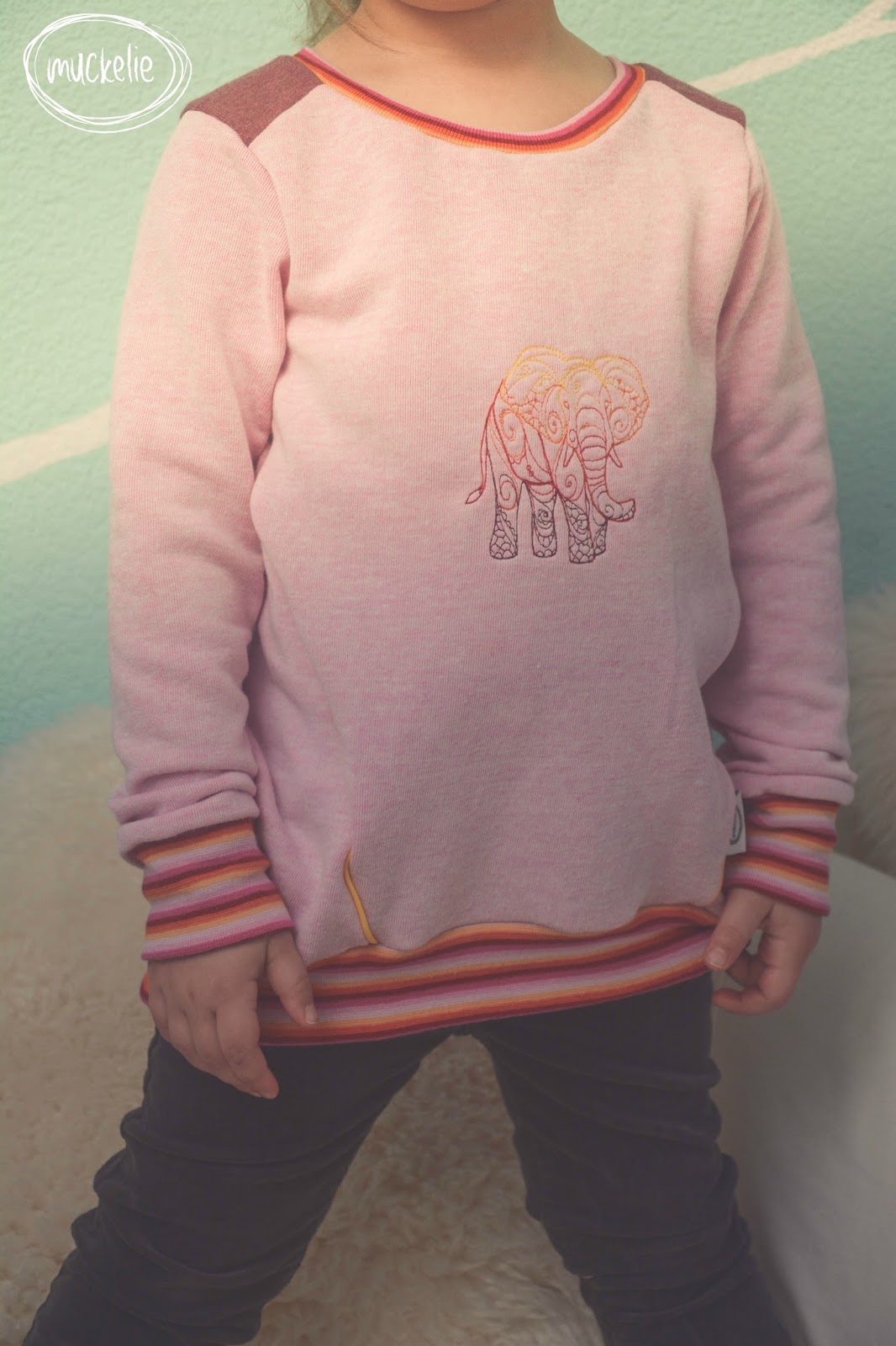 Passend zum Bündchen habe ich auch die Farben des Stickbildes ausgesucht. Ich bin ganz stolz auf mich, diese Mal hat es besser geklappt mit dem Sticken.