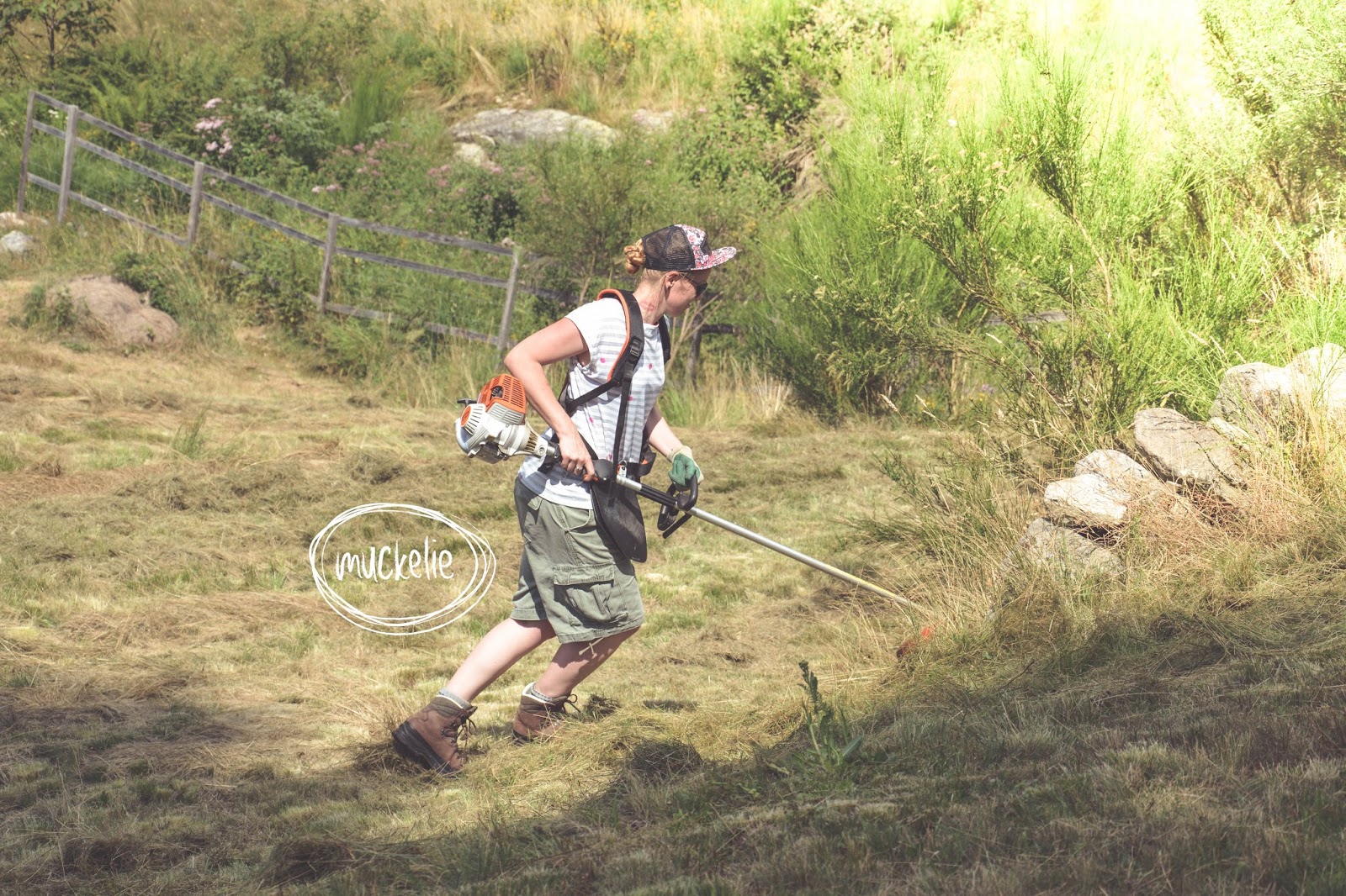 Dadurch, das Wanderwege durch unsere wiesen führen, müssen jene genäht werden und ja der Umschwung ist nicht gerade wenig. Eigentlich ist das auch nicht schlimm, aber dadurch, dass das Gelände am Hang ist, muss man viel mit der Elektrosense mähen und das dauert seine zeig, geschweige den vom Heu zusammen rächen.